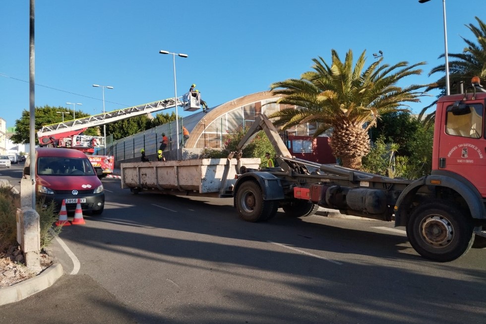 Los trabajos, iniciados hoy, cuentan con la colaboración de los Bomberos y el personal municipal, quienes han facilitado el desmontaje.
