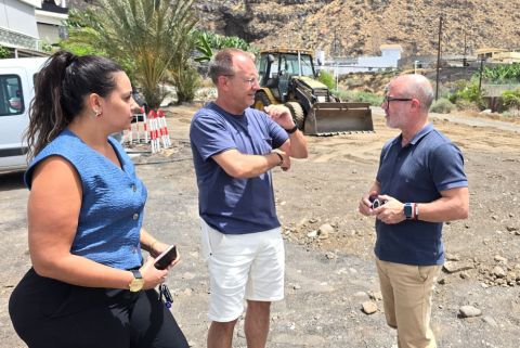 Sergio Rodríguez visitó las obras que ya se están ejecutando junto al viceconsejero para la Recuperación Social y Económica de La Palma, Pedro Afonso, y la concejala de Urbanismo de Los Llanos de Aridane, Tamara Acosta, donde pudieron comprobar los avances que ya se han realizado.