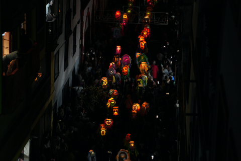 Según informa el Ayuntamiento, se encendieron más de 850 faroles artesanales elaborados en los talleres municipales con estructuras de madera y materiales como papel de seda, celofán y cartulina. La tradición, que se remonta a la segunda mitad del siglo XIX, volvió a reunir a vecinos de todas las edades en una celebración colectiva.