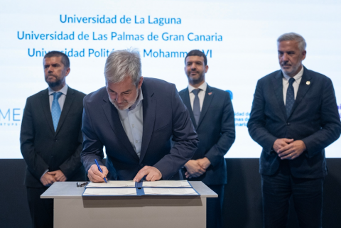 El acuerdo, firmado por las universidades públicas canarias (ULL y ULPGC), la UM6P y la asociación Emerge, permitirá apoyar iniciativas científicas y tecnológicas desarrolladas por investigadores y empresas de ambos territorios. Estará cofinanciado por el Ejecutivo canario y la UM6P, y gestionado por la Consejería de Universidades.