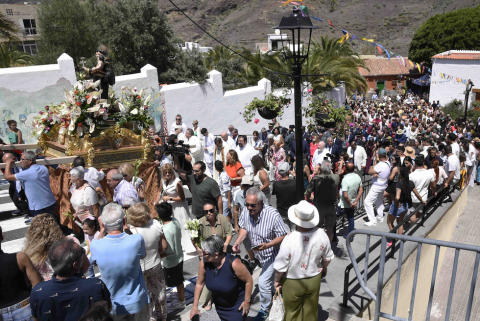 Más de mil personas participaron este viernes en los actos religiosos de las fiestas patronales de San Antonio ‘El Chico’ en Mogán (Gran Canaria), que incluyeron misa, procesión y el canto colectivo de 'Los Pajaritos', himno que recuerda los milagros del patrón.