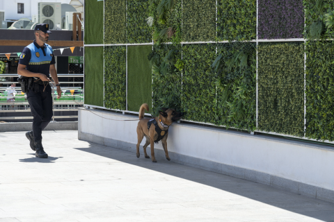 El agente canino Ares, un pastor belga malinois de casi tres años, trabaja junto a su guía, el agente David Suárez, en la detección de hasta seis tipos de sustancias psicotrópicas en personas, vehículos o escondites insospechados como falsos techos, alcantarillas o sombrillas. Su intervención ha permitido aumentar el número de intervenciones y actas mensuales, según ha informado el jefe accidental del cuerpo, Marcos Domínguez.