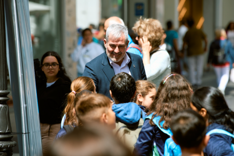 El presidente de Canarias, Fernando Clavijo, ha disfrutado este viernes de una jornada especial junto a escolares de todas las islas en ‘De Palique, tu radio en la calle’, un proyecto que acerca la radio a los más pequeños y que ya va por su novena edición.