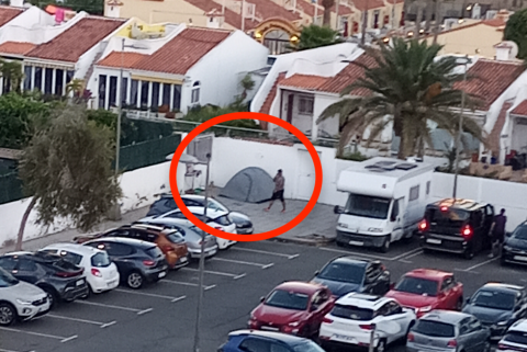 Vecinos de Playa del Inglés (Gran Canaria) han denunciado la presencia de un asentamiento improvisado en la vía pública, en la zona de la Plaza de Finlandia, frente a unos apartamentos, en una calle paralela a la Avenida de Tirajana.