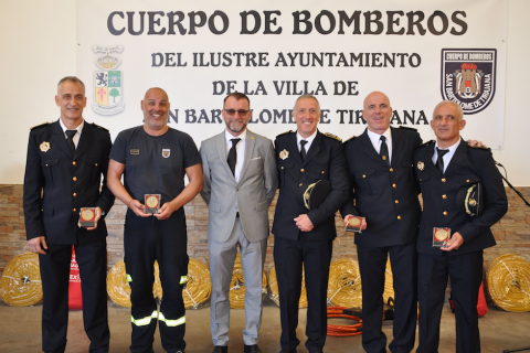 El servicio de Extinción de Incendios y Salvamento (SEIS) del Ayuntamiento de San Bartolomé de Tirajana ofreció este sábado, coincidiendo con la festividad de su patrón San Juan de Dios, un reconocimiento oficial al mérito profesional por sus 25 años de servicio a los bomberos Antonio González González (Loreto IV), Javier Armas Armas, Juan Andrés Coruña Medina y Santiago Mejías Ramírez.