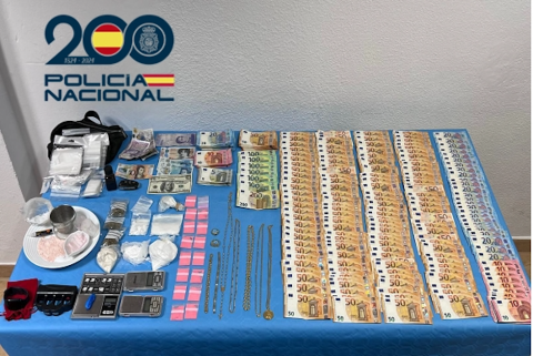 El operativo policial finalizó con el registro de la vivienda, donde incautaron 96,21 gramos de cocaína, 822,4 gramos de hachís, 37,4 gramos de marihuana, 2.625 euros en efectivo y diversos utensilios para la elaboración y dosificación de drogas.