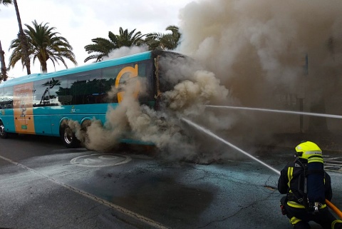 Una guagua de la compañía Global ha registrado un incendio este jueves mientras circulaba por el Campo Internacional de Maspalomas.