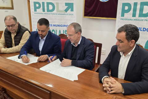 El Cabildo de La Palma destina 2,4 millones de euros con cargo del Plan de Desarrollo Local (PIDL) a la mejora de infraestructuras en Villa de Mazo. El presidente insular, Sergio Rodríguez, y el alcalde de Villa de Mazo, Idafe Hernández, han suscrito el convenio de colaboración de este programa que dotará al municipio de más de 600.000 euros al año para la puesta en marcha de proyectos clave para la localidad. Con la rúbrica con este municipio, los 14 de la Isla ya han formalizado su adhesión al PIDL.