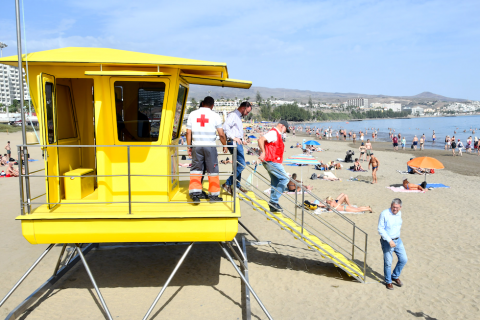 Las playas del sur de Gran Canaria comienzan a lucir renovadas con cuatro nuevas torretas de vigilancia y salvamento, instaladas en la cala de Las Burras, Playa del Inglés y Playa de Maspalomas.
