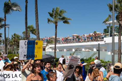 Ben Magec-Ecologistas en Acción, organizador de las protestas del 20-O contra el turismo de masas en Canarias y miembro de la Coordinadora "Canarias Tiene un Límite" de Gran Canaria, denuncia el "abuso policial" en Meloneras, donde un hombre fue detenido por un presunto atentado a agentes de la autoridad durante la protesta que tuvo lugar este domingo.