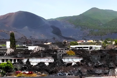 Pero el día 25 de noviembre una nueva boca eruptiva, hacia el sur, vomitó un río de roca fundida que alcanzó El Corazoncillo y llegó a este cementerio, al que desde hacía dos meses no se podía acceder. La lava, muy fluida, rellenó totalmente el camposanto viejo, y dejó la torre del crematorio al descubierto. Y, como si de un cuerpo incinerado se tratara, salían vapores, gases y humos de combustiones. Fue su último aliento.