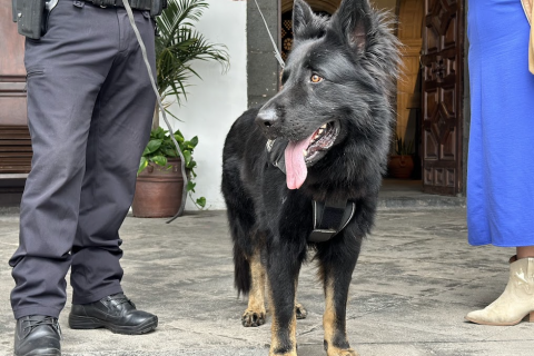 Durante la recepción, Antona impuso al agente canino su acreditación oficial como K9, distintivo con el que se conoce a los perros policía.
