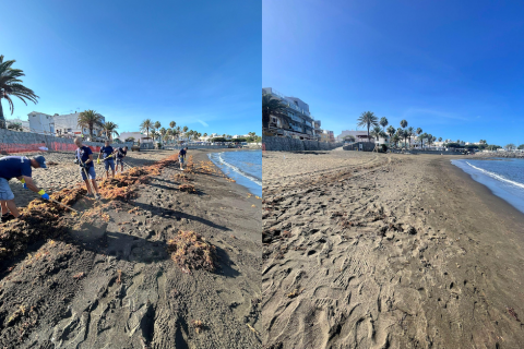 El concejal de Playas, Willy García, ha explciado que este último mes ha sido complicado que las playas estén totalmente libres de estas algas ya que al ser muchas, se tarda entre unas cuatro o cinco horas en su retirada.
