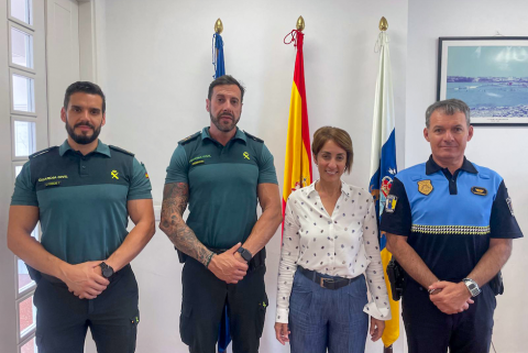 El capitán-jefe de la Compañía de la Guardia Civil de Vecindario, Manuel García Márquez, se ha reunido con la alcaldesa de Mogán, Onalia Bueno, en las instalaciones municipales de Arguineguín, donde también estuvieron presentes el subinspector jefe de la Policía Local, Jorge Alemán, y el teniente-comandante del Puesto Principal de la Guardia Civil de Puerto Rico, Rubén Arroyo.