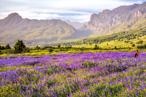 La llegada de la primavera en La Palma se manifiesta con un espectáculo natural único: la floración de los tajinastes rosados (Echium perezii), que pintan de color las cumbres más altas de la isla, habitualmente a partir de los 1.700 metros sobre el nivel del mar.