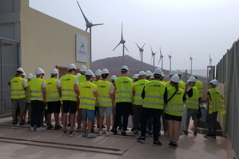 Los alumnos de cuarto de la ESO y 1º de Bachillerato del IES José Frugoni Pérez de Telde han protagonizado una vista guiada al Parque Eólico Montaña de Arinaga, en la que han tenido la oportunidad de conocer en detalle el funcionamiento de esta planta, el potencial de las energías renovables y, al mismo tiempo, asumir el importante papel que deben desempeñar las nuevas generaciones en la transición energética en Gran Canaria.