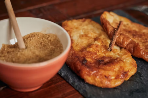 En estos días, en las calles de muchas ciudades de habla hispana, el paisaje lingüístico (es decir, el “conjunto de realizaciones materiales del lenguaje que vemos por escrito en signos expuestos en un entorno público determinado” en palabras de la filóloga Lola Pons) muestra cartelería, especialmente ubicada en pastelerías y cafeterías, que anima a la compra o elaboración y degustación de dulces tradicionales como leche frita, hornazos, flores y roscos fritos, pestiños y las clásicas torrijas.