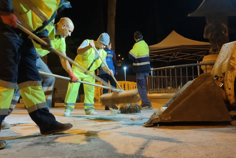 Así, con los últimos ecos de la música, el operativo arrancó las tareas en la zona norte de Santa Cruz de La Palma, en la plaza de La Alameda, uno de los puntos álgidos de la fiesta, para continuar la recogida y limpieza de calles hasta la entrada sur de la ciudad.