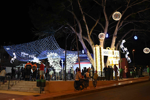 La alcaldesa, Onalia Bueno, subió al escenario con un grupo de niños, quienes tuvieron el honor de pulsar el botón mágico que iluminó todas las luces de Navidad del municipio.