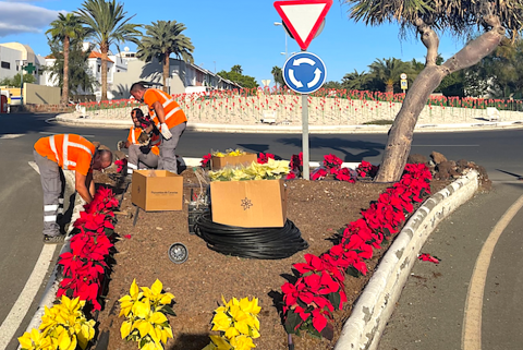 Maspalomas se llena de colores vibrantes en estas fechas navideñas gracias a la plantación masiva de alrededor de 3.000 flores de pascua.