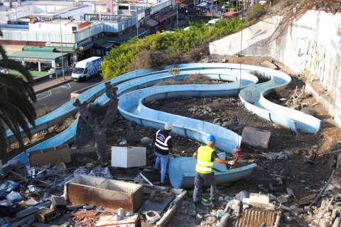 Estos trabajos, que se prolongarán durante el tiempo que sea necesario hasta completar la retirada de los viejos toboganes y toda la basura acumulada durante tantos años, están siendo ejecutados por el propio Ayuntamiento con recursos humanos y materiales de las concejalías de Vías y Obras, Limpieza y Parques y Jardines, en una campaña de colaboración sin precedentes por su envergadura.