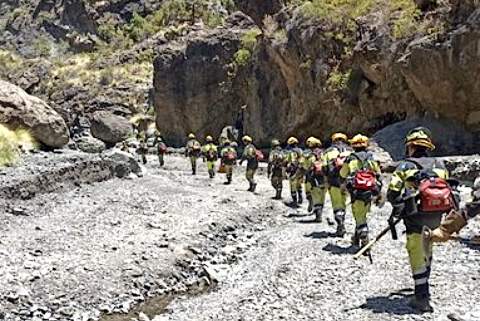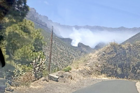 Hay retenes en camino, o ya en la zona, enviados por el Cabildo de La Palma, el Parque Nacional y la Eirif, pero no podrán actuar a no ser que el fuego evolucione a posiciones más seguras, ha dicho Rodríguez.