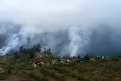 El operativo de extinción ha destaco la evolución favorable de las llamas, que en la última evaluación se concentraban en el interior del Parque Nacional de la Caldera de Taburiente y en menor medida en el flanco sur, en torno al barranco de El Jieque.