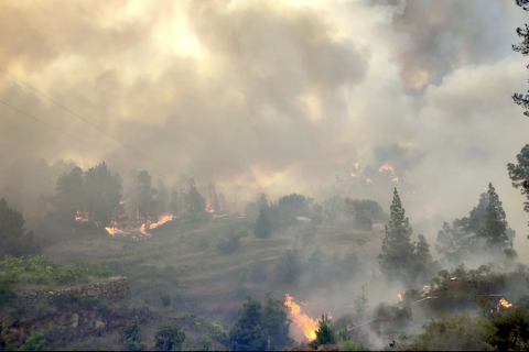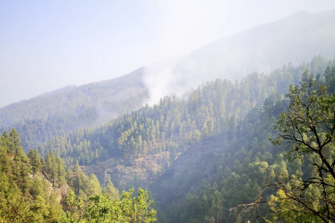 Los medios de extinción del incendio que se declaró en el noroeste de La Palma en la madrugada del sábado se concentran este martes en el Parque Nacional de la Caldera de Taburiente, en una zona de pinar de orografía complicada y difícil acceso, pero se confía en que pueda haber "una mejora sustancial" en la evolución del fuego en las próximas horas.