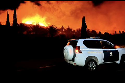 En la cara oeste de La Palma el cielo está cubierto por una nube de ceniza, las carreteras tomadas por los vehículos todoterreno de los equipos de emergencias y además hay más de 2.000 vecinos evacuados y 4.500 hectáreas afectadas. Recuerda a la erupción volcánica, pero no. Esta vez la isla se enfrenta al incendio forestal de Puntagorda.