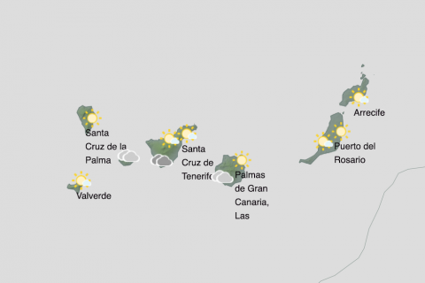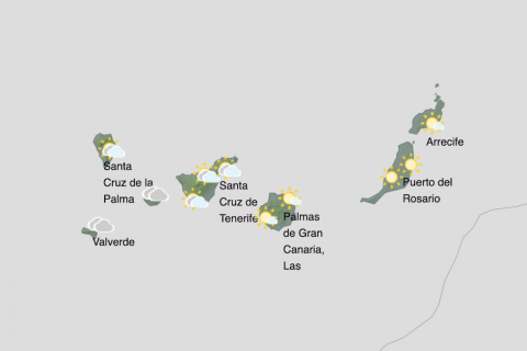 Durante las horas centrales aumentará a nuboso en zonas de interior de las islas de mayor relieve, especialmente en las vertientes este y sur, donde hay probabilidad de lluvias débiles, dispersas y ocasionales. En el sureste de Lanzarote y Fuerteventura, intervalos nubosos a mediodía.
