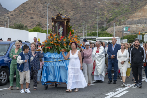 A las 19:00 horas arrancó la homilía en la ermita del barrio, oficiada por el párroco Juan Antonio Artiles. Tras la misa, en la que participaron la alcaldesa de Mogán, Onalia Bueno, y ediles del gobierno local, los vecinos y vecinas acompañaron la imagen de María Auxiliadora en su procesión por la calle Madrid, arteria principal de la zona.