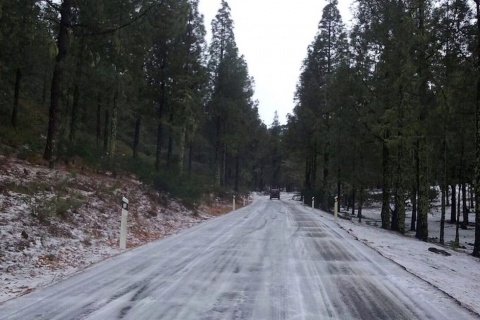 El Cabildo de Gran Canaria mantiene cerrados al tráfico dos accesos a la cumbre de la isla por presencia de nieve y hielo en la calzada.
