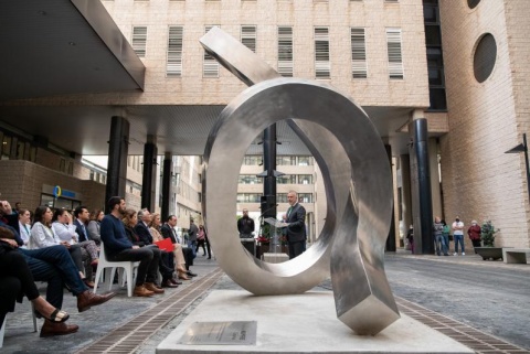 Una escultura del artista canario Daniel Pérez titulada “A pulso” recibe desde este lunes a los pacientes y profesionales del Hospital Universitario Doctor Negrín de Las Palmas de Gran Canaria, y busca recordar y agradecer el trabajo de los sanitarios del archipiélago durante la pandemia de covid-19.