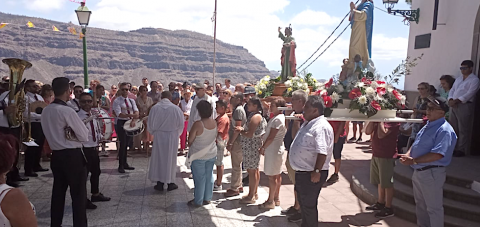 Decenas de personas siguieron el paso de la virgen en un recorrido por las principales calles del pueblo acompañados de la Banda Guiniguada que fue la encargada de poner la nota musical al acto llevado a cabo en el interior de Mogán.