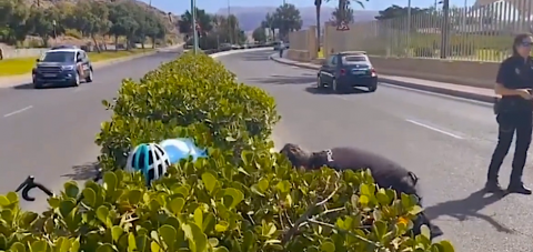 Agentes del Cuerpo Nacional de la Policía junto a un ciclista, rescataron el pasado viernes a una familia de patos localizados en la mediana de la Avenida Alejandro del Castillo, frente al Parque del Sur, en San Bartolomé de Tirajana. (Clic para ver el vídeo)