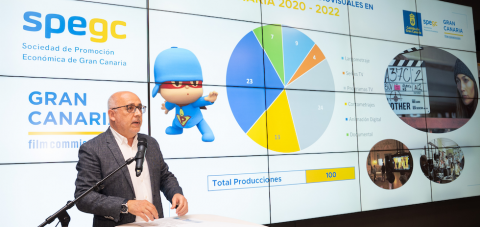 El presidente del Cabildo de Gran Canaria, Antonio Morales, presenta el Balance de Producciones Audiovisuales Gran Canaria 2020-2022, un informe que ha sido elaborado por la Sociedad de Promoción Económica de Gran Canaria (SPEGC), a través de su iniciativa, Gran Canaria Film Commission.