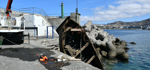 Puertos Canarios, entidad que gestiona el Muelle de Arguineguín, ha comenzado con la retirada luego de que la alcaldesa de Mogán, Onalia Bueno, impulsara la misma al no asumir la gestión el órgano competente, la Delegación del Gobierno en Canarias.