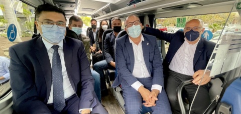 El presidente del Cabildo de Gran Canaria, Antonio Morales, y el vicepresidente y consejero de Obras Públicas, Infraestructuras, Transporte y Movilidad, Miguel Ángel Pérez del Pino, han asistido al acto de presentación de la puesta en marcha del servicio de transporte público en Santa Lucía de Tirajana prestado por el nuevo operador, Guaguas Gumidafe, en el que han estado acompañados por el alcalde del municipio, Francisco García.