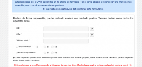 "Con esta medida se agiliza el proceso de obtención de la Incapacidad Temporal (IT) por COVID-19, al tiempo que se reduce la presión sobre la línea 900 112 061 y las consultas directas en los centros de salud para comunicar el caso", ha apuntado este martes la Consejería en una nota en la que señala que la web destinada a esta cuestión es www.miautotestcovid.com
