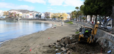 El Ayuntamiento de Mogán ha iniciado las obras de rehabilitación del frente marítimo de la playa de Las Marañuelas, en Arguineguín. Consisten en la eliminación de la rocalla situada junto al muro que delimita el arenal y la reconversión del parterre del lateral derecho en un área de descanso.