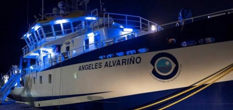 El buque del Instituto Español de Oceanografía (IEO) Ángeles Alvariño, atracado desde ayer en el puerto de Santa Cruz de Tenerife, partió de Galicia y se dirigió hacia el puerto de Cádiz, desde el que salió en la noche del pasado viernes.