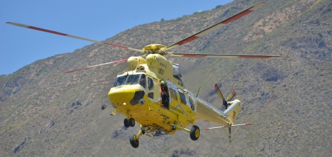 Rescatadores del helicóptero, perteneciente al Grupo de Emergencias y Salvamento del Gobierno de Canarias, se descolgaron de la aeronave y con colaboración de bomberos del Consorcio de Emergencias insular prestaron asistencia inicial a la afectada, de 67 años, izándola luego a bordo.