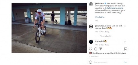 "Después de una rápida parada en boxes, volvemos a competir. Diez días y contando para el Anfi Challenge Mogán de Gran Canaria, con un atractivo recorrido y algunas subidas decentes para escalar", señala en Instagram Frodeno, medalla de oro en los Juegos de Pekín y vencedor del Ironman de Hawai en tres ediciones (2015, 2016 y 2019).