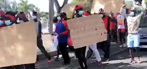 Un grupo de inmigrantes irregulares se manifestaba esta mañana en las calles de Maspalomas en el sur de Gran Canaria. El motivo de la manifestación tiene que ver con la actual política migratoria gestionada por la Unión Europea y el Gobierno Central.