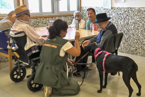 Las sesiones comenzaron hace tres semanas, con la participación de la perrita Lúa y son supervisadas por especialistas en adiestramiento canino y técnicos del área social.