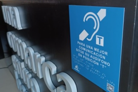 Los sistemas incorporan lazos de inducción magnética, bucles de mostrador y micrófonos en las zonas de atención al público, donde el ruido ambiente y la reverberación suelen dificultar la comprensión verbal.