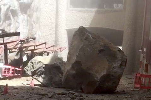 Una posible desgracia se quedó en susto tras la caída desde 30 metros de altura de dos enormes rocas, en una zona de acceso al hotel Gloria Palace Royal Thalasso & Hotel, durante este sábado.