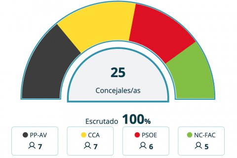 Por su parte, el PSOE ha bajado a 6 concejales, uno menos que en 2019 y NC ha repetido 5.