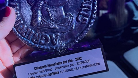 La XII edición de los Premios Agripina, Festival español de Publicidad, Marketing y Comunicación ha reconocido a Lopesan Hotel Group como anunciante del año, destacando la calidad de las piezas promocionales estrenadas durante 2022, la consistencia de la marca y el valor añadido aportado al mundo de la publicidad por el conjunto de campañas desarrolladas en colaboración con22GRADOS, la compañía canaria del marketing.