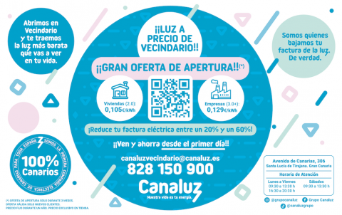 Canaluz, la primera compañía eléctrica nacida en Canarias para toda España, inaugura su primera tienda en Gran Canaria con un objetivo claro: ofrecer luz más barata, atención personalizada y energía con identidad canaria. En esta entrevista, Javier Sánchez Delgado, gerente de Canaluz Vecindario, explica por qué esta apertura es mucho más que un punto de venta: es una apuesta por la cercanía, la transparencia y el ahorro real. Leer más...